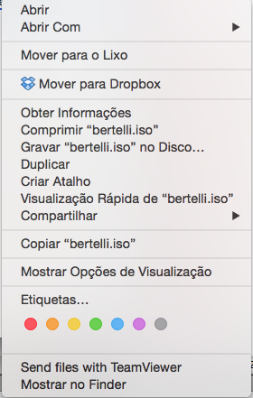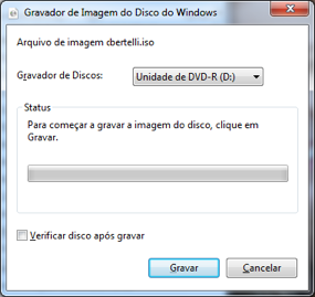 Clique com o botão direito do mouse sobre o arquivo. Selecione Gravar "bertelli.iso" no disco: